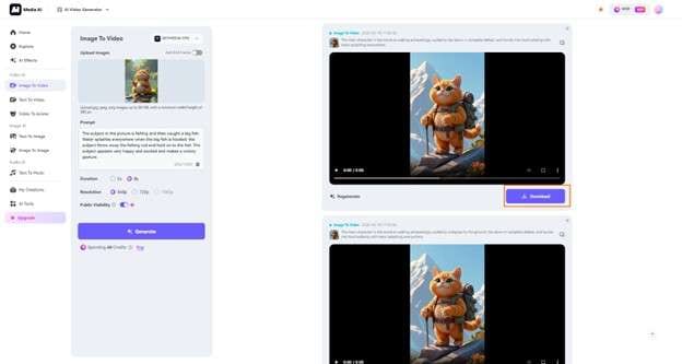 Once you have entered the prompt and made the required changes, click on the “Generate” button. The generated video can then be downloaded and used for different social media activities.