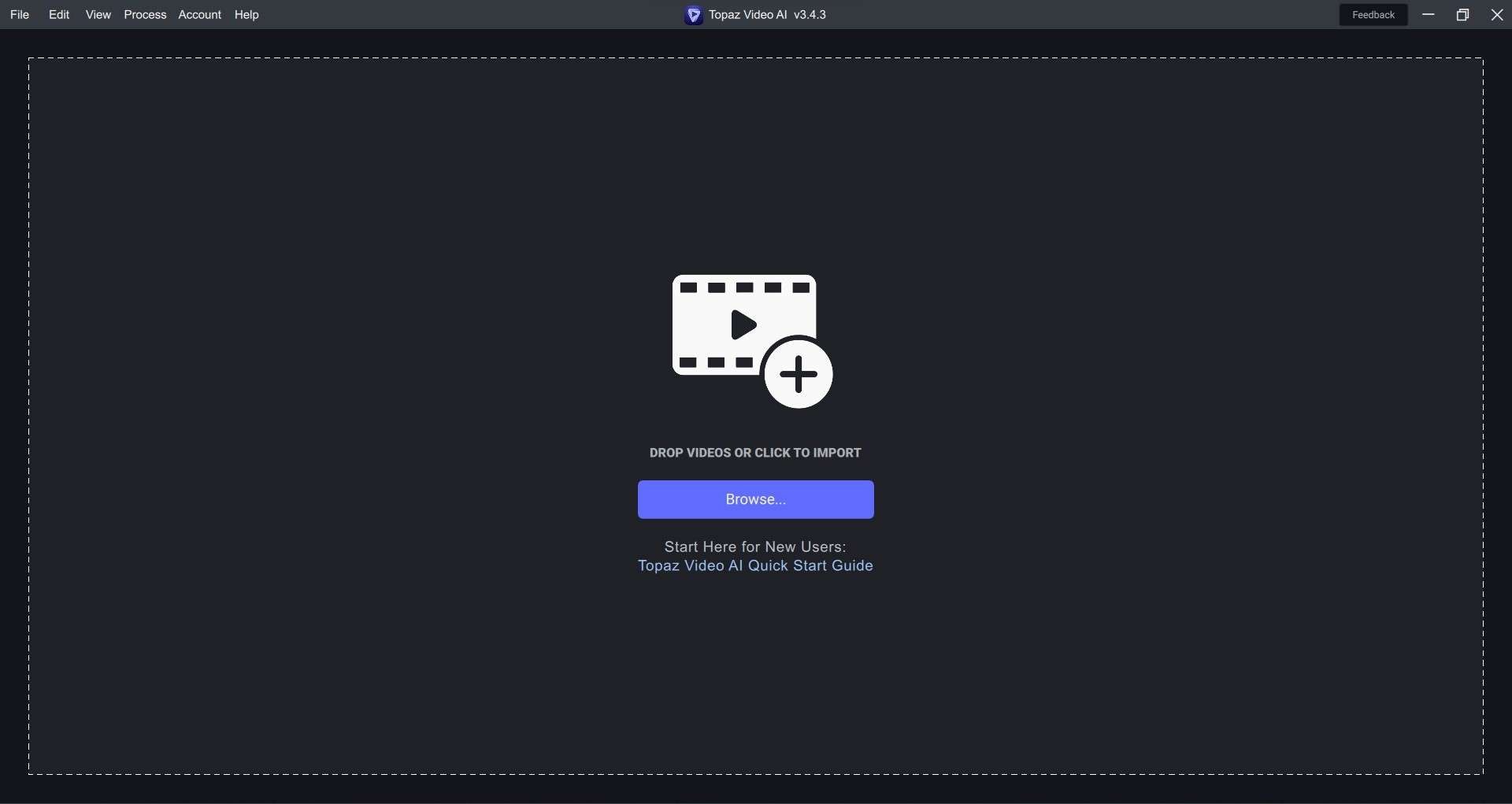 Once you launch Topaz video AI, you’ll see a “Browse” button at the heart of the AI software.
